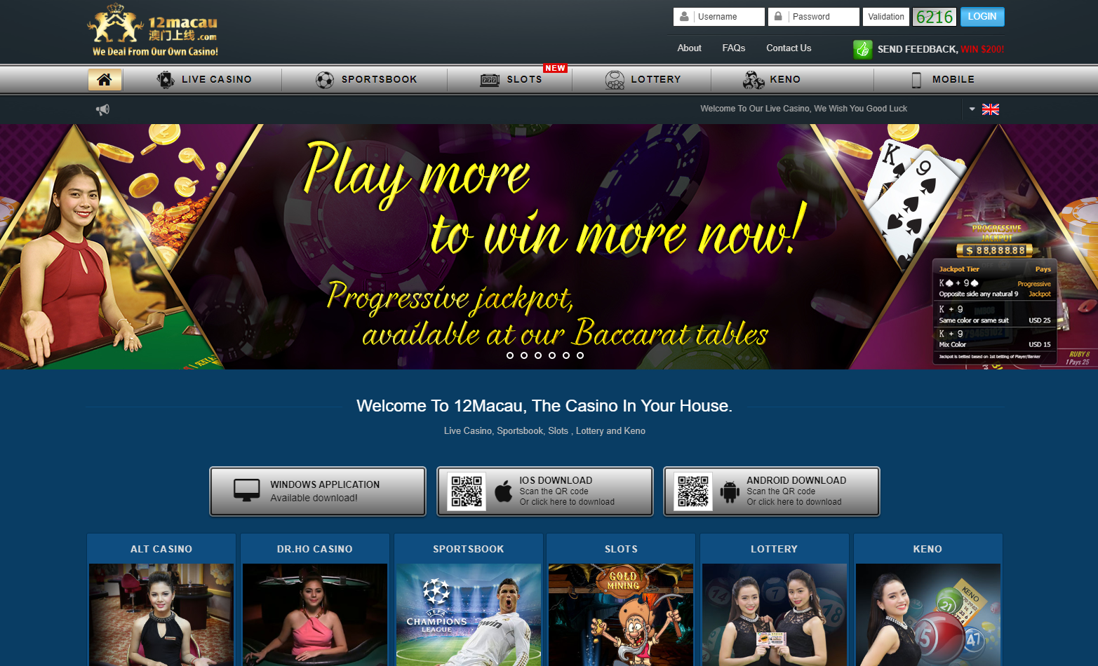 12macau is an online casino brand that has been resonating with players and deemed as one of the most trusted online casinos in Asia. Playing at this online casino will give players access to live casino games, slots, sportsbook, keno and lotteries.