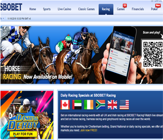 加入赛马,摩托赛事就在SBOBET.com SBOBET允许您只使用一个账户就在英国,爱尔兰,南非和迪拜国家地区游戏。