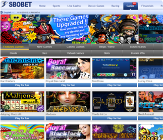 SBOBET ให้บริการหนังสือกีฬาคาสิโน E-Games และการแข่งรถที่มีชื่อเสียงสามารถเล่นบนมือถือรองรับ 10 ภาษาและยังคงพัฒนาเพิ่มเติม